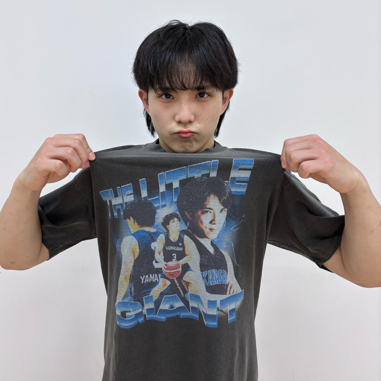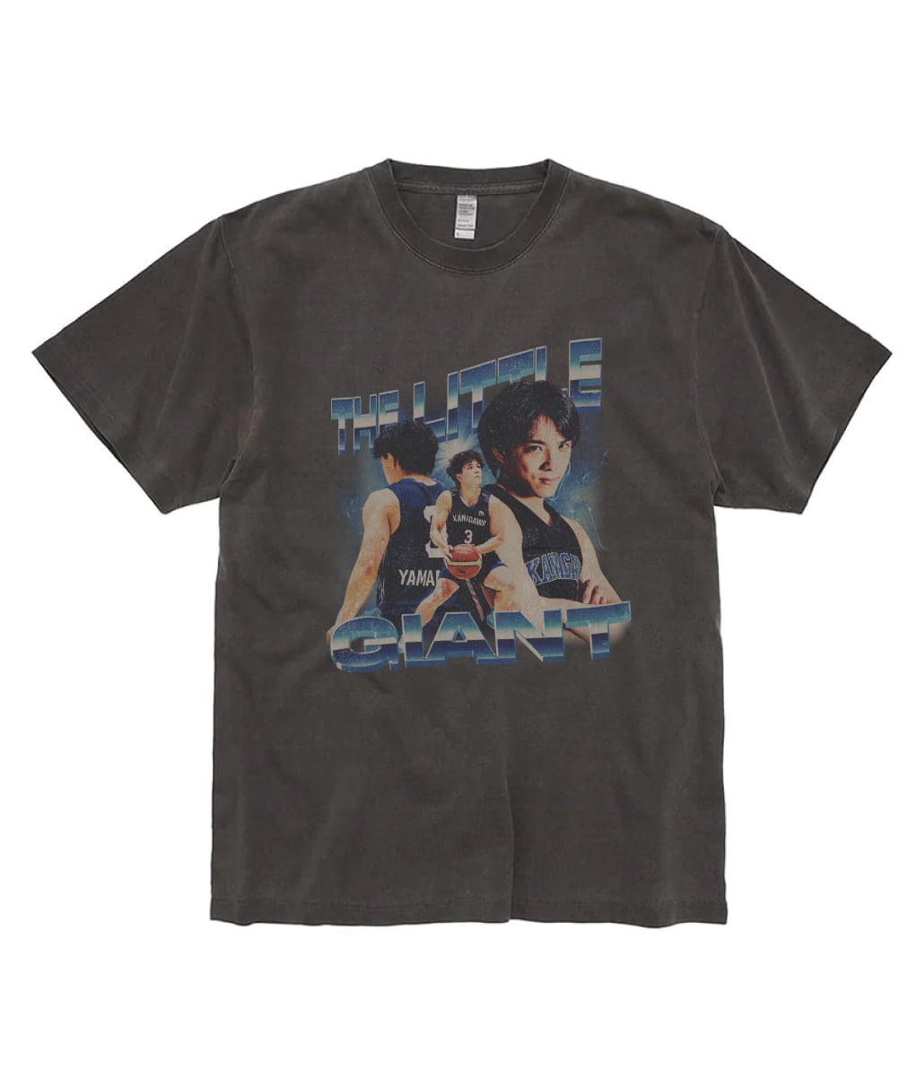 163cmの身長で大学バスケの最前線で戦う神奈川大学4年・山本 愛哉選手をデザインしたTシャツが登場!彼の異名"THE LITTLE GIANT(小さな巨人)"をモチーフにした古着テイストなアイテムです。オシャレに着こなしてマナヤとともに大きな壁に立ち向かおう!